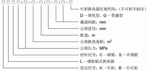 3、螺旋板式换热器型号表现方式以下: